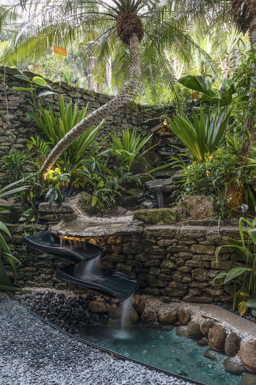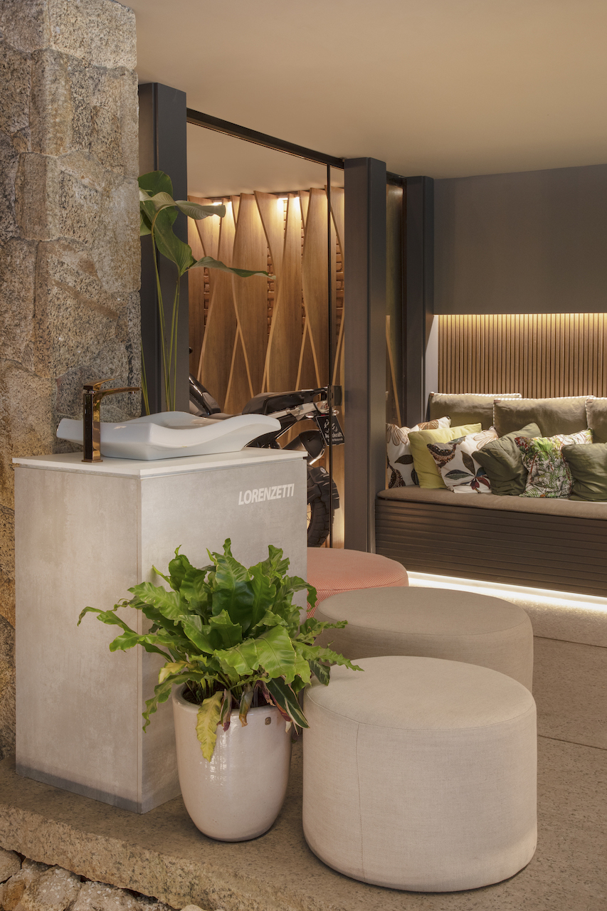 Uma alusão ao Bioma Mata Atlântica. O paisagismo do Caminho das Águas tem como objetivo aproximar a intervenção ao ambiente natural. Destaque para a cascata suspensa em vidro que tem como fonte sete chuveiros que desembocam em cubas de cerâmica, e para as lâminas d’água criadas em forma de lagos ornamentais. Um desafio paisagístico superado com auxílio dos lançamentos deste ano da Lorenzetti.
