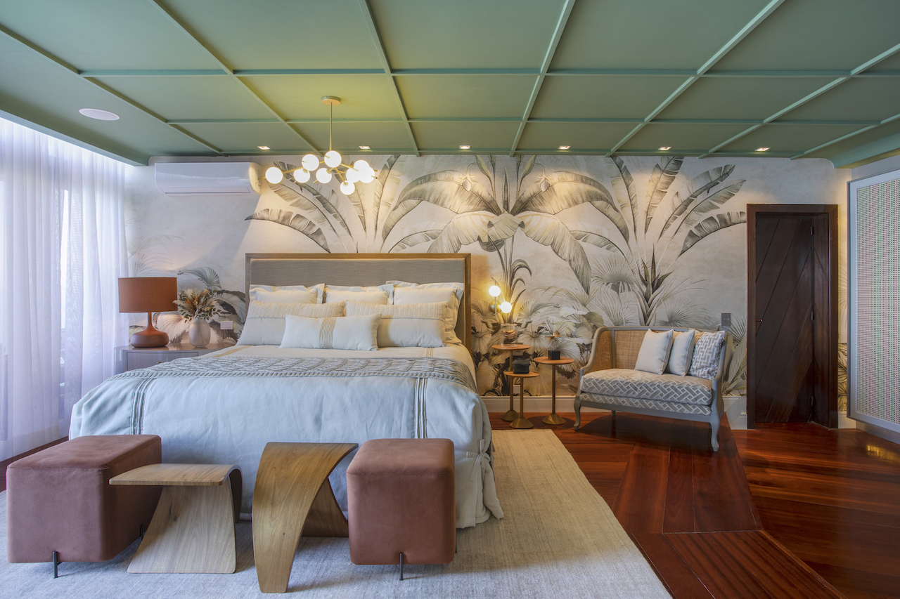A essência e a tranquilidade do mar para dentro da suíte que trabalha a volumetria do teto ao chão. Uma atmosfera de memórias afetivas através da decoração, um verdadeiro refúgio para alma. Uma homenagem ao jornalista Valmir Morateli.