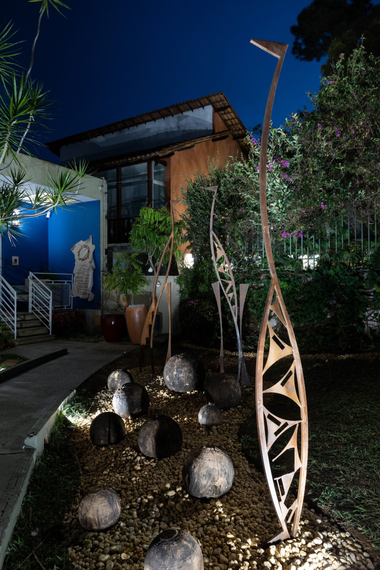 O grande desafio deste projeto foi trazer para este jardim a essência da nossa mineiridade, retratando o movimento das montanhas mineiras e a trajetória dos rios que cortam o nosso estado. Trazemos também para este momento a nossa essência, que transforma em esculturas de aço os resíduos da indústria. E elas brotam neste jardim como plantas do cerrado.