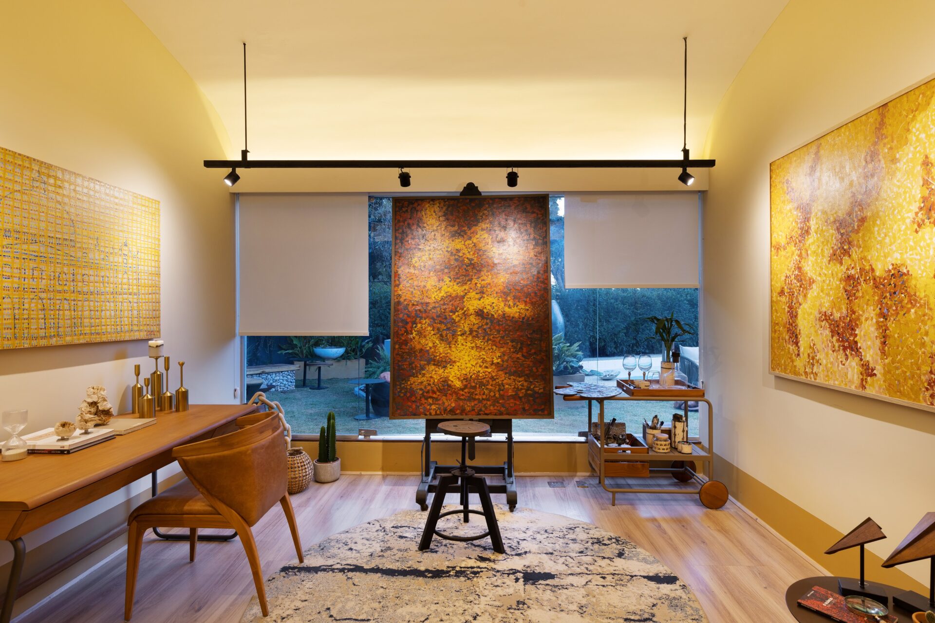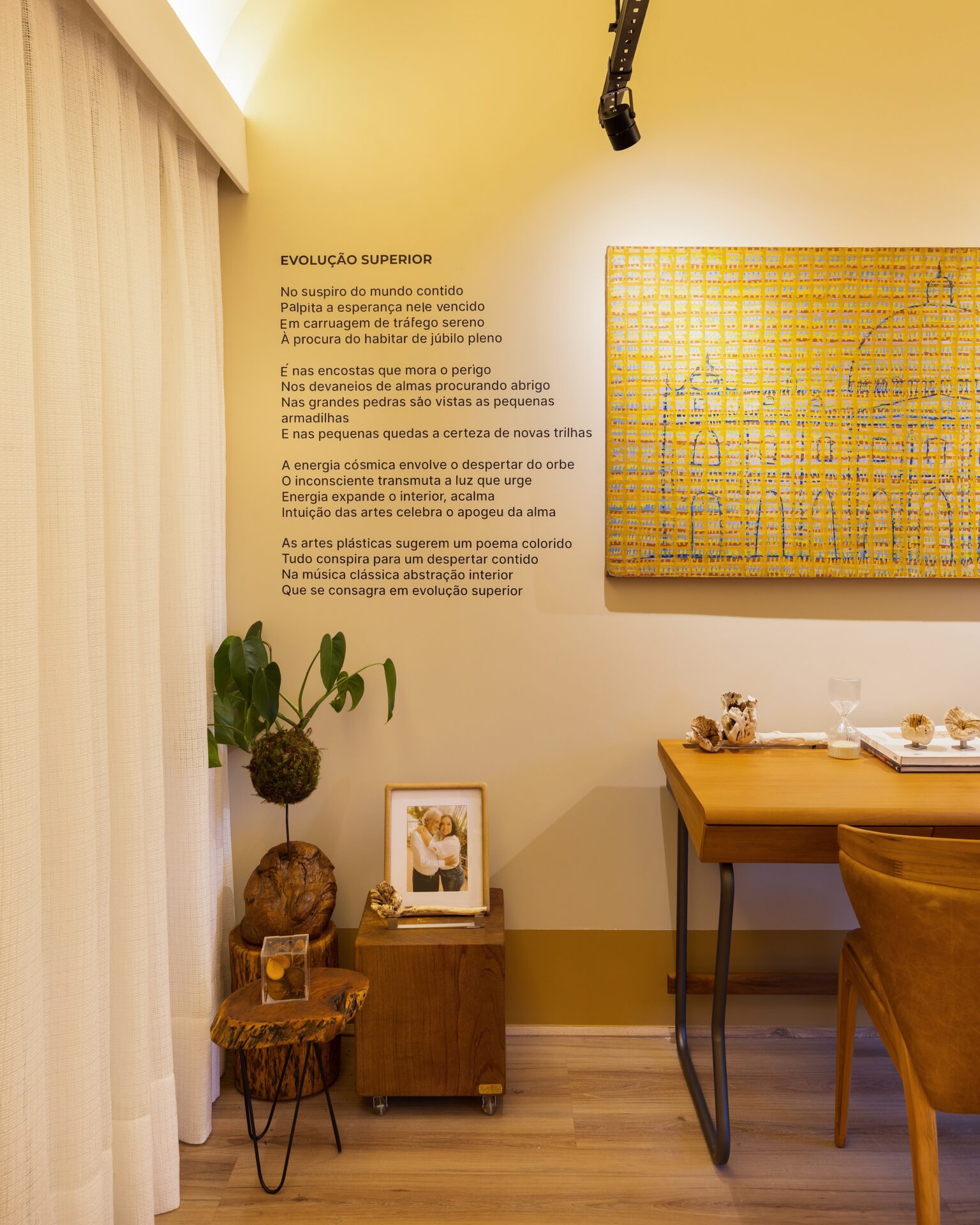 O ateliê é uma homenagem ao meu avô Geraldo. Os quadros e poesias do vovô nos conectam às nossas emoções. O resultado é um espaço autêntico, que transcende tendências passageiras, valoriza nossas raízes e acolhe nossas memórias.