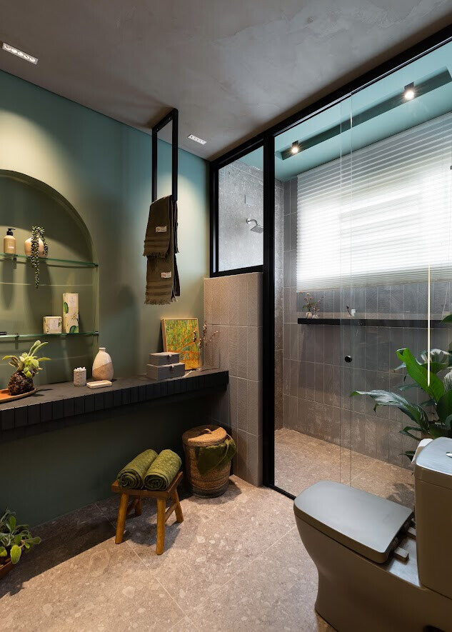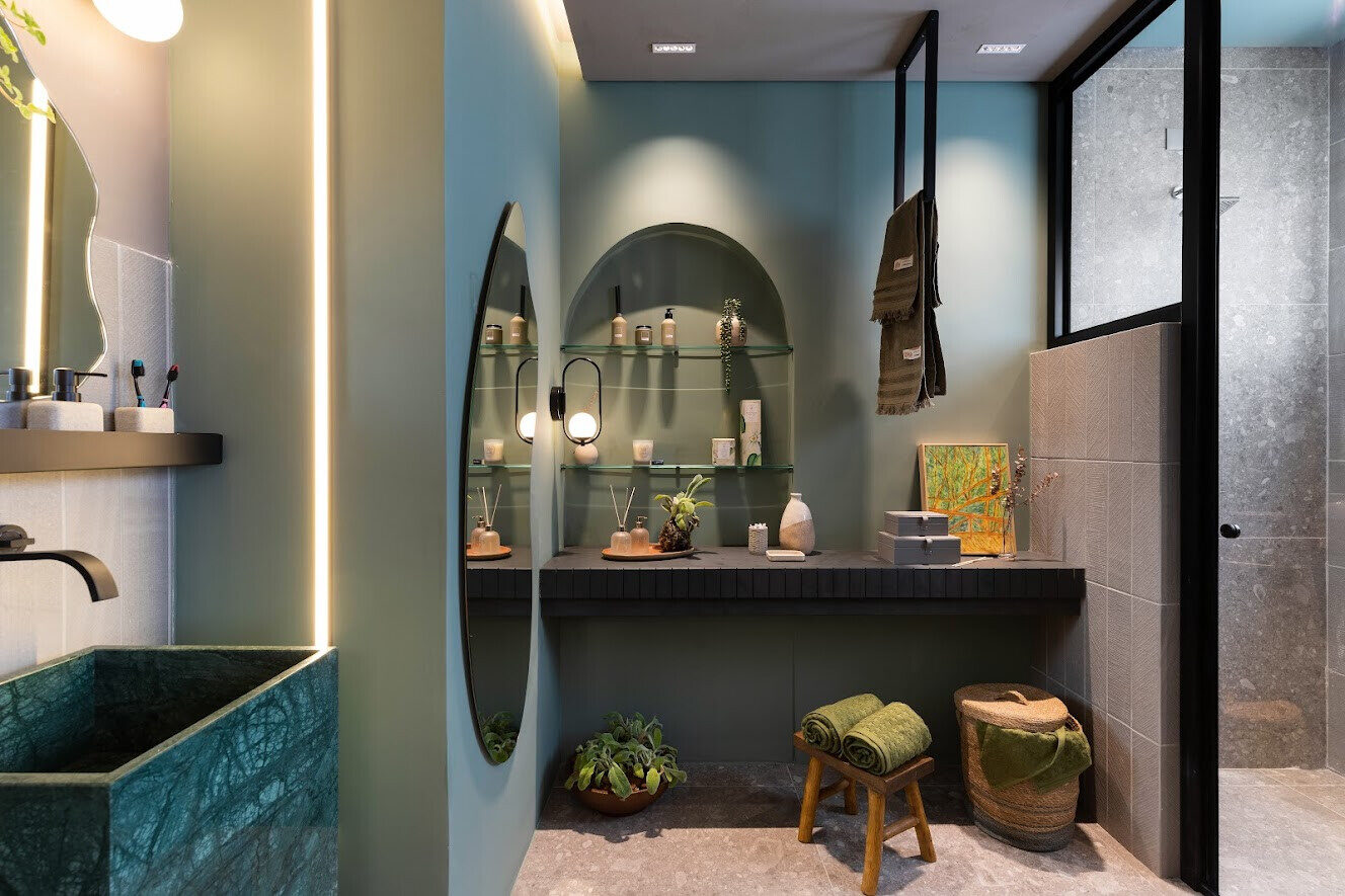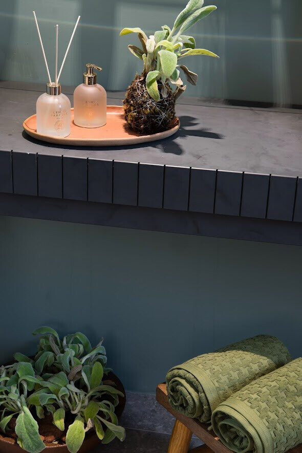 O Banho Sálvia conecta a natureza e o estilo moderno para o jovem paisagista através de elementos naturais, cores, texturas e aromas, proporcionando um momento do dia que revigora e relaxa.