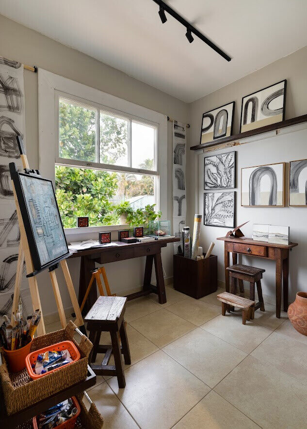 Na mostra levo um pouco do cotidiano no ateliê da minha casa, através de alguns móveis do ambiente e objetos de acervo pessoal.