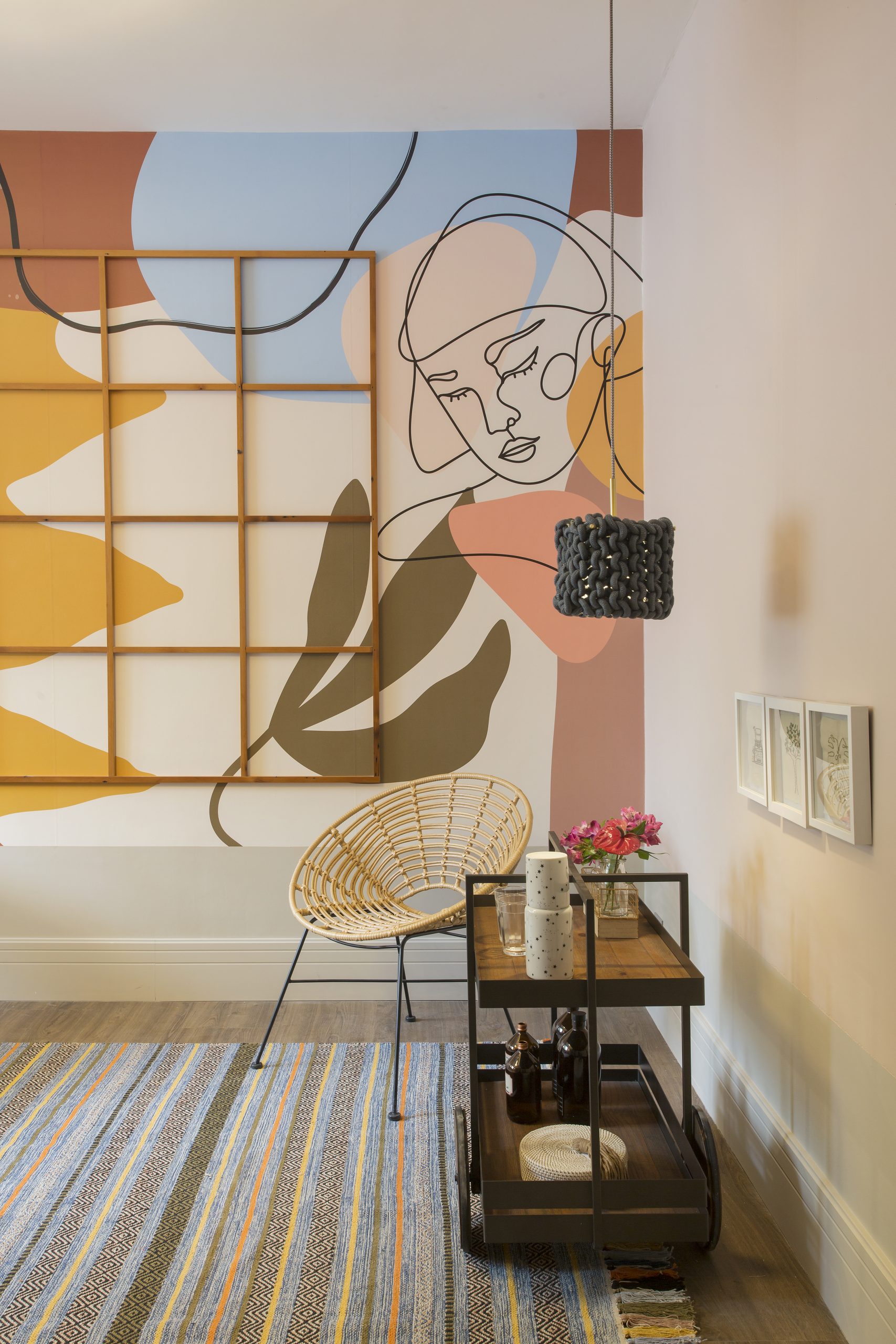 O espaço alia mobilidade a boas soluções, com criatividade e funcionalidade. Os móveis são soltos e de porte médio, facilitando a troca de layout quando convier. As paredes ganharam cores através do uso de adesivos e tintas, um recurso barato que pode ser renovado sem muito custo. O piso laminado, assentado sobre o piso existente, diminui a necessidade de obra, produzindo menos entulho, além de ser um material ecologicamente correto. A madeira utilizada para criar as molduras é de refugo de marcenaria, sobras de cortes usados na fabricação de móveis. Luminárias e peças decorativas de qualidade e preços acessíveis provam que o bom design não precisa ser caro.