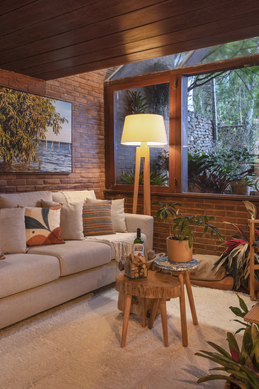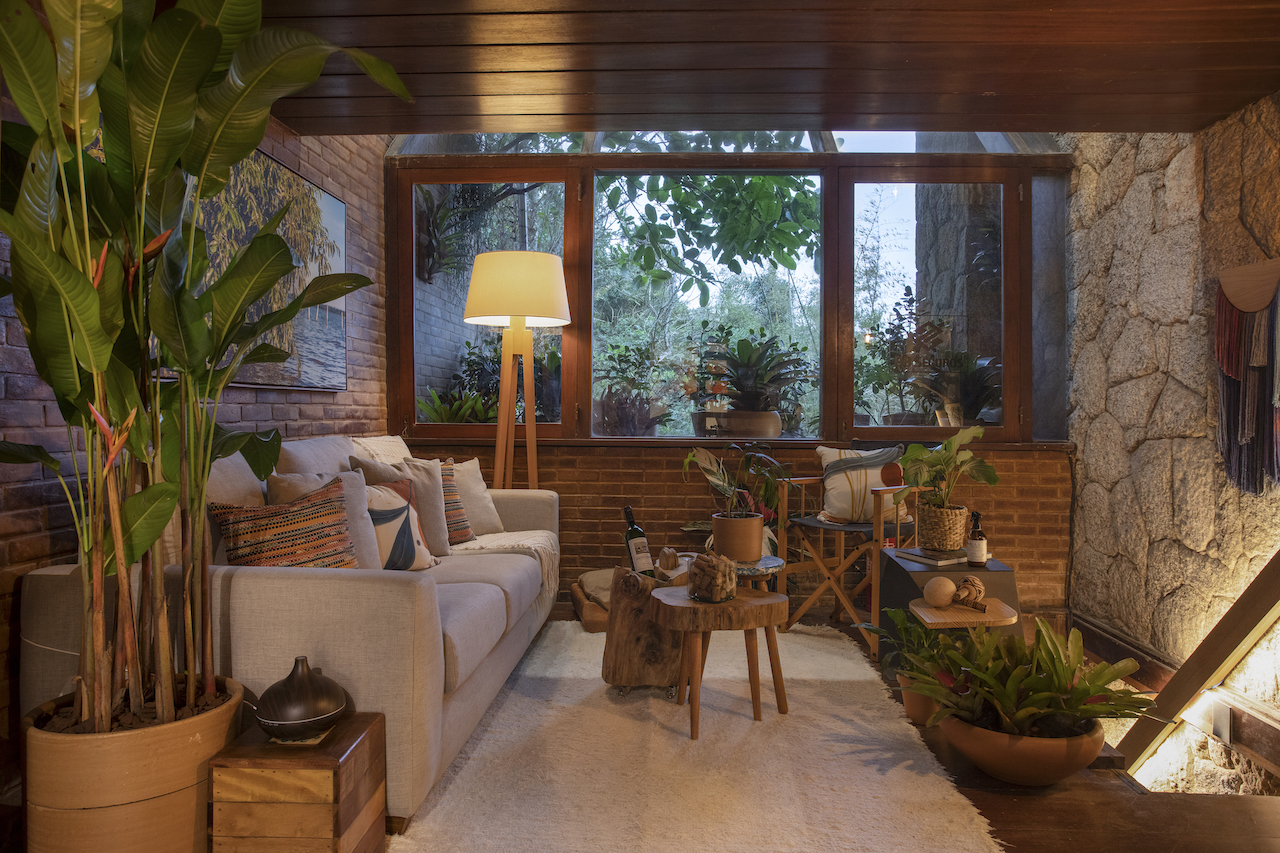 Ressignificar para conectar. A sala íntima mergulha no universo do artesanato brasileiro, potencializando o ambiente com o reaproveitamento de materiais e toques sensoriais. Uma experiência de conexão e respeito entre o homem e a natureza.