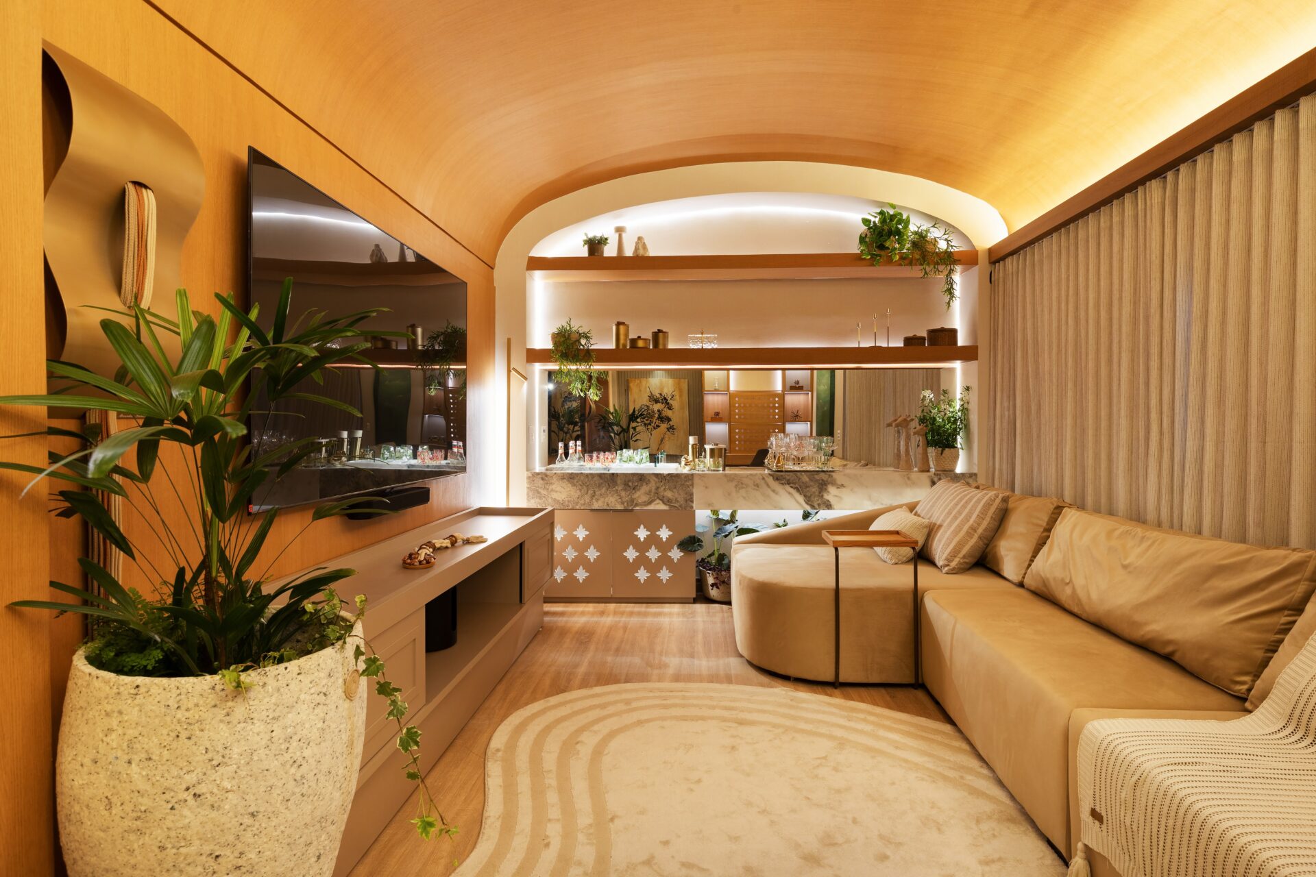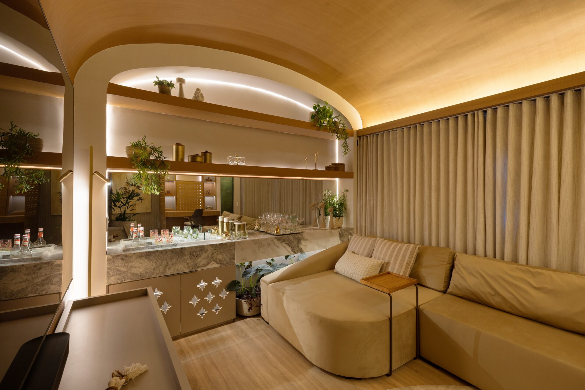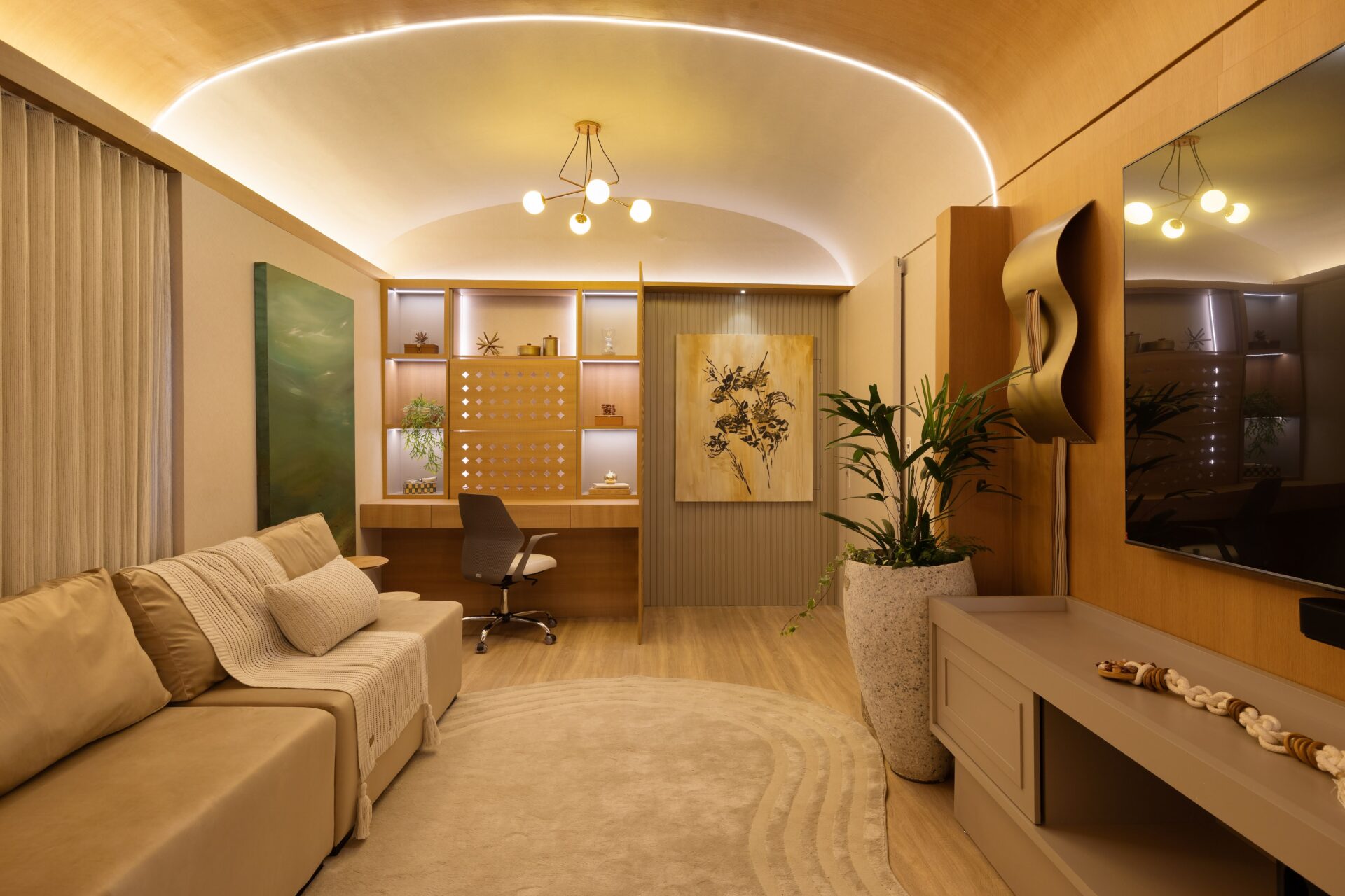 O home office se camufla para dar lugar ao descanso em Meu Tempo de Estar, um espaço multifuncional que revela um novo jeito de habitar o lar, com soluções acessíveis e renovação inteligente, criando um refúgio onde a rotina encontra pausa, aconchego e tempo de ser.